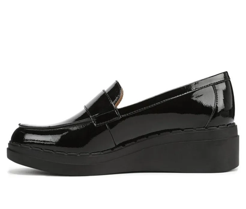 Elevate your everyday look with this wedge loafer, styled with a polished bit detail for a refined finish. The smooth synthetic upper creates a clean silhouette, while the slip-on design makes it easy to wear from desk to dinner. A cushioned insole adds comfort for extended outings, and the low wedge heel delivers subtle height with reliable support. Perfect for pairing with trousers or denim, this loafer offers timeless charm and versatile comfort.