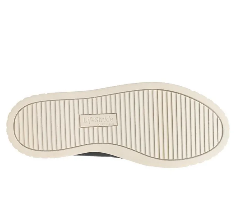 Step into sleek comfort with these modern slip-on sneakers from LifeStride. Designed with a smooth synthetic upper and a sporty platform sole, these shoes blend casual style with everyday wearability. The stretch panels allow for easy on and off, while the cushioned insole ensures soft support with every step. Finished with a flexible, grippy outsole, these sneakers are perfect for workdays, errands, or weekend relaxation.