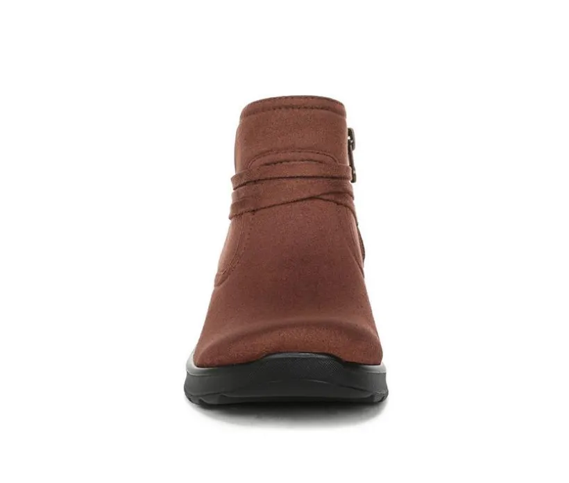 Stay stylish and comfortable in these versatile ankle booties built for everyday wear. Designed with a stretch fabric upper, side zipper, and round toe, they slip on easily while giving a sleek look. The eco-conscious BLOOM™ foam insole and BZEES Air Step Technology deliver cushioning and a lightweight feel, while the cushioned arch support keeps every step soft and supportive. Finished with an EVA outsole and machine-washable convenience, these booties are as practical as they are fashionable.