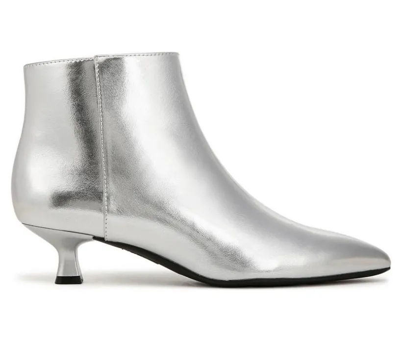 With a now-trending sculpted kitten heel, these ankle boots for women look gorgeous and feel incredibly comfortable. Faux leather upper with a softly pointed toe, side zipper for easy on/off, and trending kitten heel. Linings crafted with partially recycled materials. Soft System® comfort package provides all-day support, flex, and cushioning. Traction sole provides you with extra stability. Just Right Height 1 5/8 inch heel.