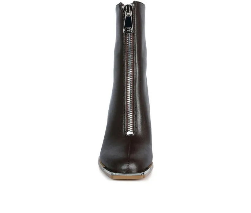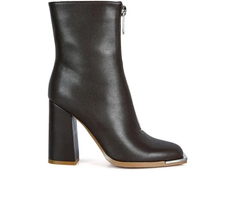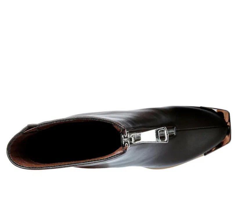 Square Toe Bootie crafted on square toe platform is a twist in the trend – the high heeled block boot has front metallic zipper opening. Stunning pair of high street boots for the fall!