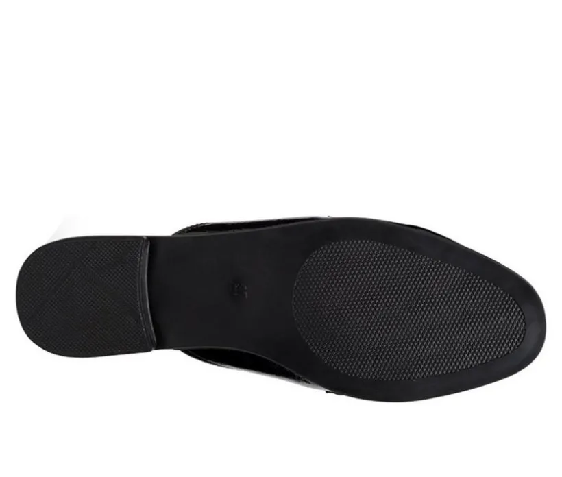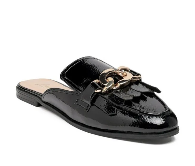 Almond Toe Mules with classic fringes and high quality metal chain buckle on top. The flat shoe is for both casual and semi-casual dressing needs.Upper Material: Crinkle Patent PULining Material: Faux LeatherOuter Sole: TPRClosed Almond ToeMetal Buckle on TopCasual ShoeFringe DetailSH2753