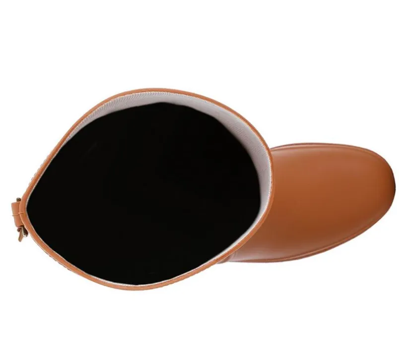 Simplistic, versatile, and chic, the calf boots are a statement piece with their eclectic design that stands out! The boots make a bold statement by themselves while are also easy to wear with the zipper closure!