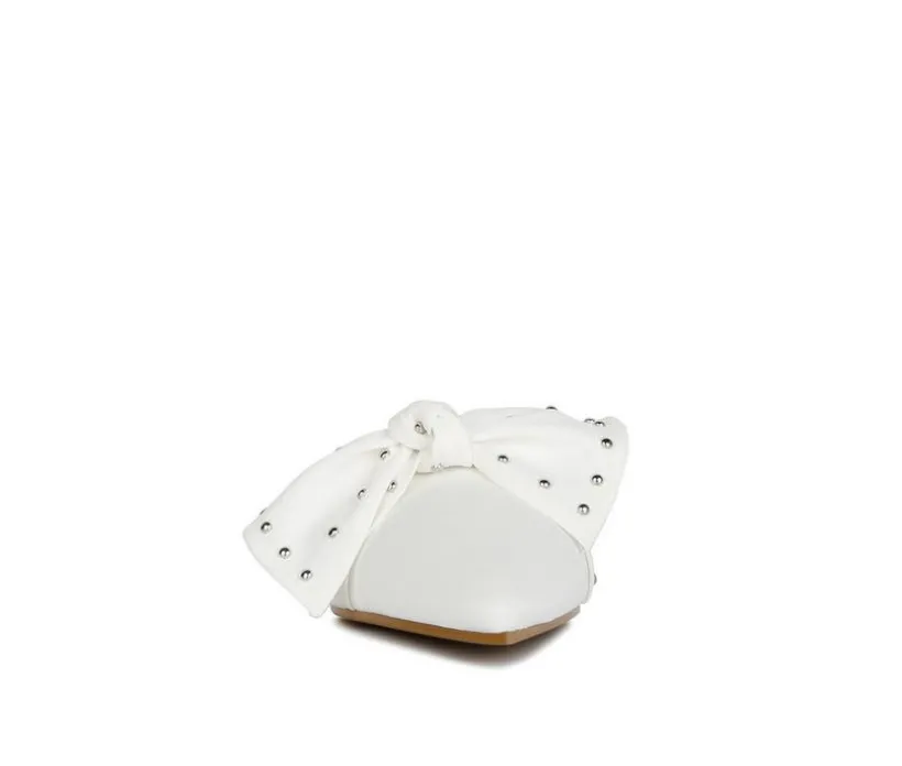 Studded Bow pointed toe mules are for all day wear and you can carry these with most of your casual outfits. Lightly cushioned and with construction that is super comfortable.