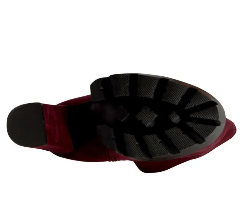 Be winter ready in the warming faux suede knee-high long boots. The high block heeled are supported on a lug sole platform which adds to the aesthetic and helps with height. It has a side zipper opening which makes it easy to wear. The elasticated gussets make the long boots fit.