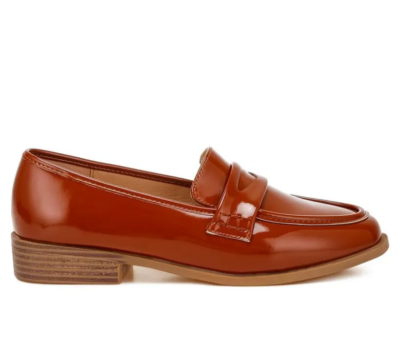 Polished and easy, this penny-strap loafer delivers sleek shine with a patent faux-leather upper. A low 0.75″ heel and cushioned insole keep it comfortable for all-day wear. The slip-on design and round toe make it a versatile closet staple for desk-to-dinner style.
