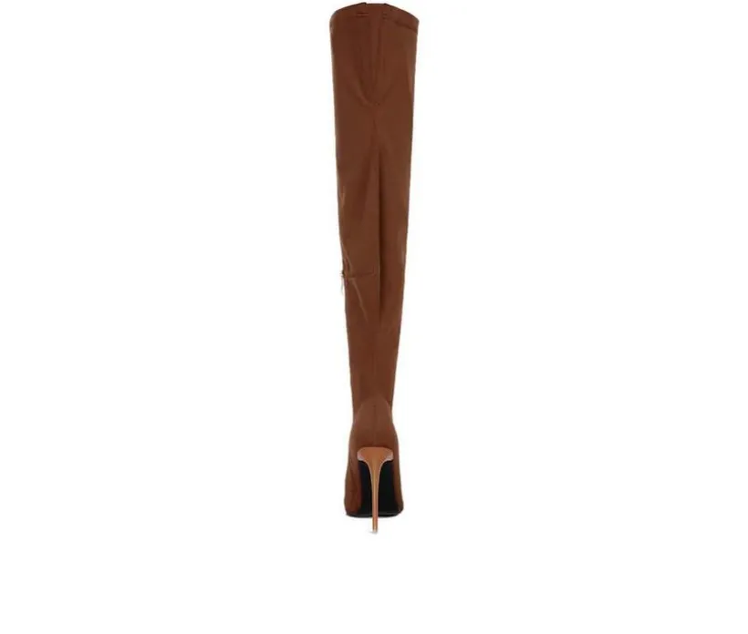 Brown Superstretch Stiletto Long Boot with a side zipper opening that makes it extremely comfortable to wear. Stretchable Over the Knee and high heeled long boot give a classic look that you can pair with shorts dress and you are ready with your eye catching look as well as its Elasticated Gusset which gives you perfect fit.