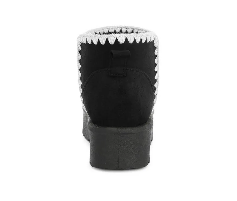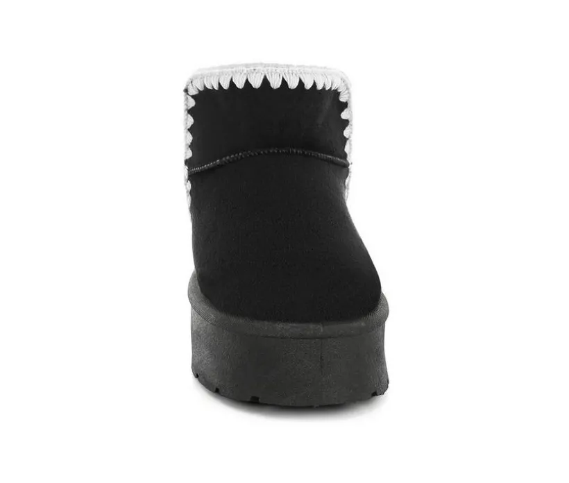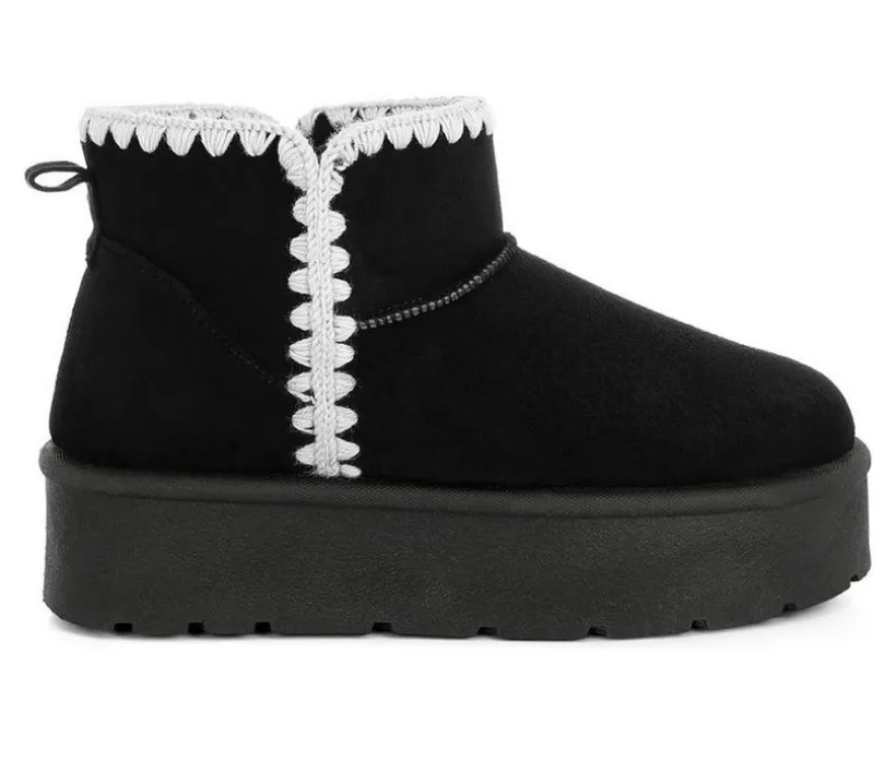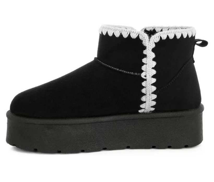 Get winter-ready in style with these plush microfiber snow boots. Designed with scalloped trim and a chunky flatform sole, they bring playful texture and cozy warmth together. The cushioned insole ensures soft support for all-day comfort in the cold.