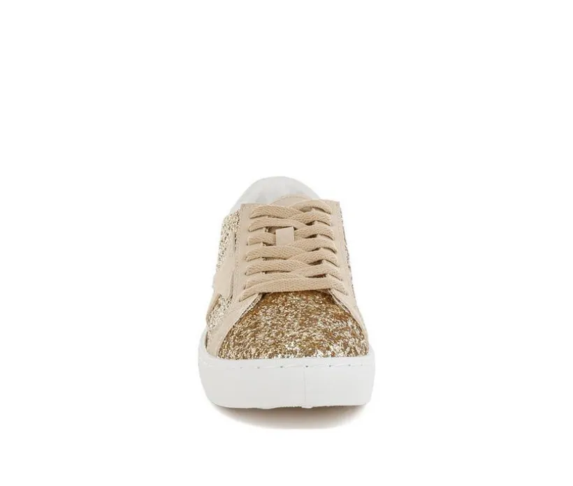The glitter sneakers are a maximalist dream with the glitter upper and the microsuede star patchwork which adds a contrasting effect to the design of the sneakers. The pair is also quite comfortable with cushion insole and chunky sole which cuts strain and offers a relaxed fit.