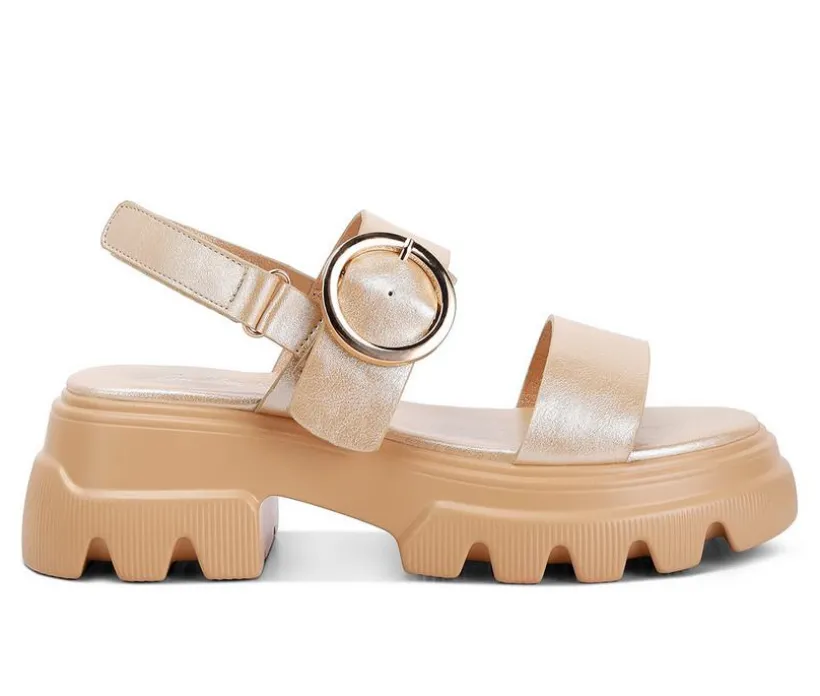 The chunky sandals are perfect when you’re looking for comfort but also style. The lug sole gives the sandals a rugged look while the metallic exterior gives the shoe a glamorous touch.