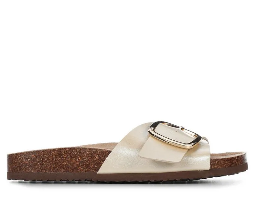 Keep it effortlessly chic with the Madden Girl Banner Footbed Sandals—a modern take on the classic slide. Featuring a single wide strap with a bold, oversized buckle, these sandals offer laid-back style with a hint of sophistication. The soft suede-like footbed contours to your foot for all-day comfort, while the minimalist design pairs perfectly with just about everything in your wardrobe.