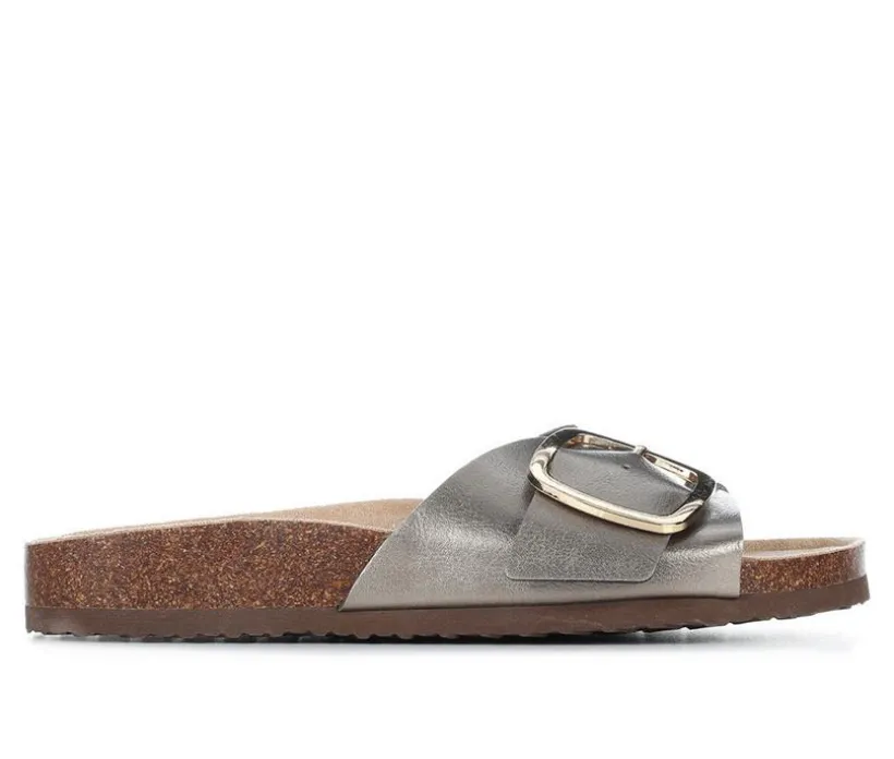 Keep it effortlessly chic with the Madden Girl Banner Footbed Sandals—a modern take on the classic slide. Featuring a single wide strap with a bold, oversized buckle, these sandals offer laid-back style with a hint of sophistication. The soft suede-like footbed contours to your foot for all-day comfort, while the minimalist design pairs perfectly with just about everything in your wardrobe.