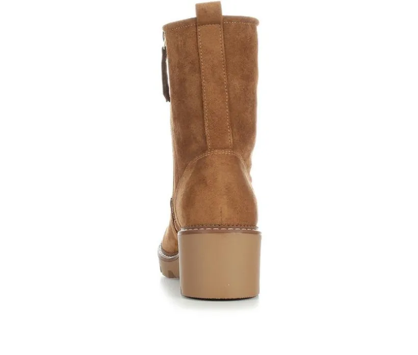 Ground your look in modern edge with the Women’s MIA Camryn Booties. Designed with a soft suede finish, this ankle-to-mid shaft boot sits on a chunky block heel with a rugged lug outsole for both style and traction. Contrast stitching along the midsole adds a crafted touch, while the pull tab at the back makes them easy to slip on and off. Perfect for pairing with denim or casual layers, these booties bring versatile style to every season.