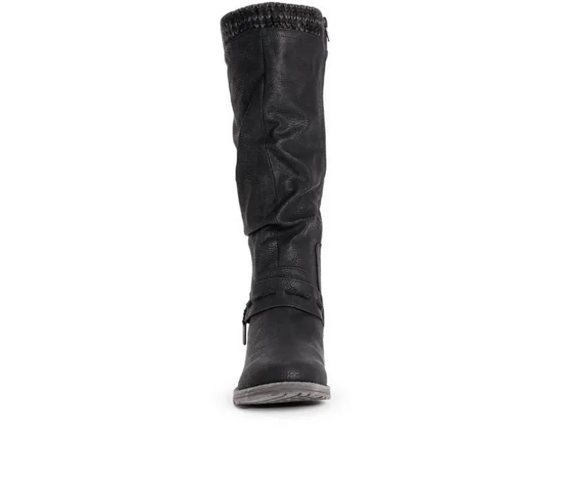 Hit the streets in LUKEES by MUK LUKS® Women’s Bianca Briana Boots. With sweet knit accents and rope detail, these knee-high boots will keep feet comfortable all day with memory foam insoles. Wipe with a damp cloth to clean, no bleach, lay flat to dry. Imported. Indoor/Outdoor Sole.100% Polyester Faux Fur Insole. 100% Polyurethane Upper. 100% Acrylic Knit. 100% Polyester Faux Fur Lining. 1.30” Block Heel. Water Resistant. Multiple color options available. Women’s Whole Sizes 6-11.