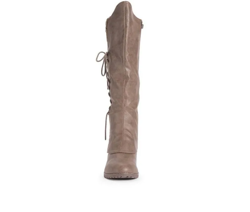Make every step count in LUKEES by MUK LUKS® Women’s Lacy Leo Boots. This water-resistant tall boot has a stacked block heel and decorative side lace up detail that reveals a peek-a-boo knit giving your outfit a sassy flair. Wipe with a damp cloth to clean, no bleach, lay flat to dry. Imported. Durable TPR Sole. 100% Polyester Faux Fur Insole. 100% Polyurethane Upper. 100% Polyester Faux Fur Lining. 2.5 Inch Heel. Memory Foam Insole. Multiple color options available. Women’s Whole Sizes 6-11.
