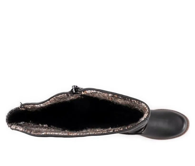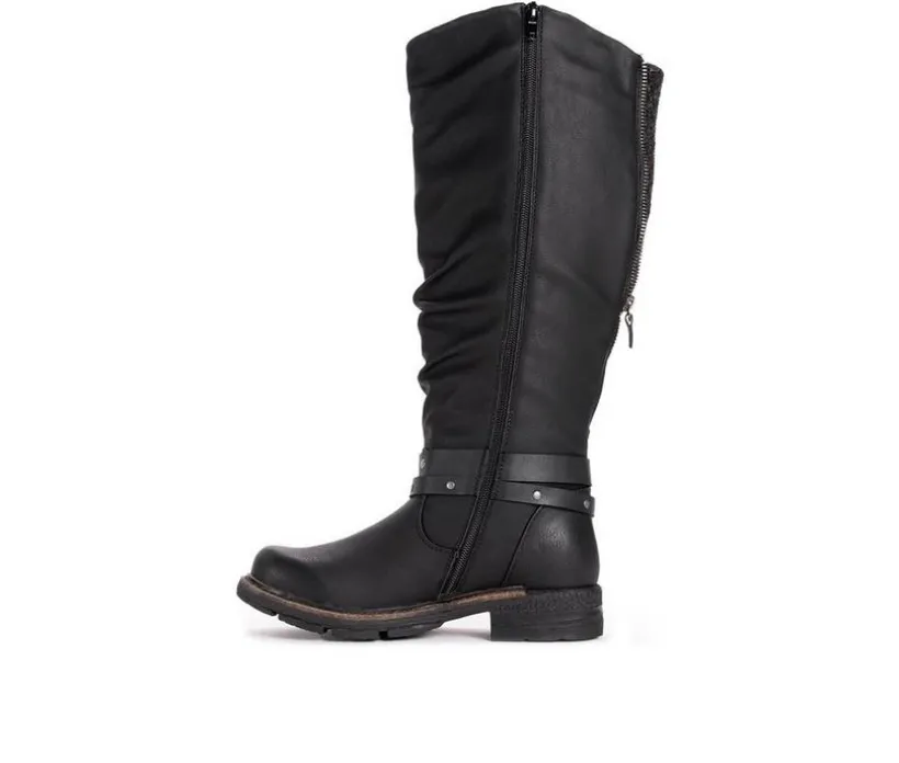 LUKEES by MUK LUKS® Women’s Logger Victoria Boots are the perfect fall weather stable. These tall water-resistant boots let you mix up your style with sweet knit accents and buckle detail. Wipe with a damp cloth to clean, no bleach, lay flat to dry. Imported. Durable TPR Sole. 100% Polyester Insole. 100% Polyurethane Upper. 100% Polyester Lining.Water Resistant. Memory Foam Insole. Multiple Color Options. Women’s Whole Sizes 6-11.