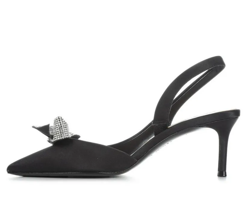 The N by Nina Novhina slingback pump blends glam flair with elegant form. With glitter accents, an open slingback strap, and a pointed silhouette, it’s crafted to turn heads at special occasions. The slip-in design ensures style without sacrificing simplicity.