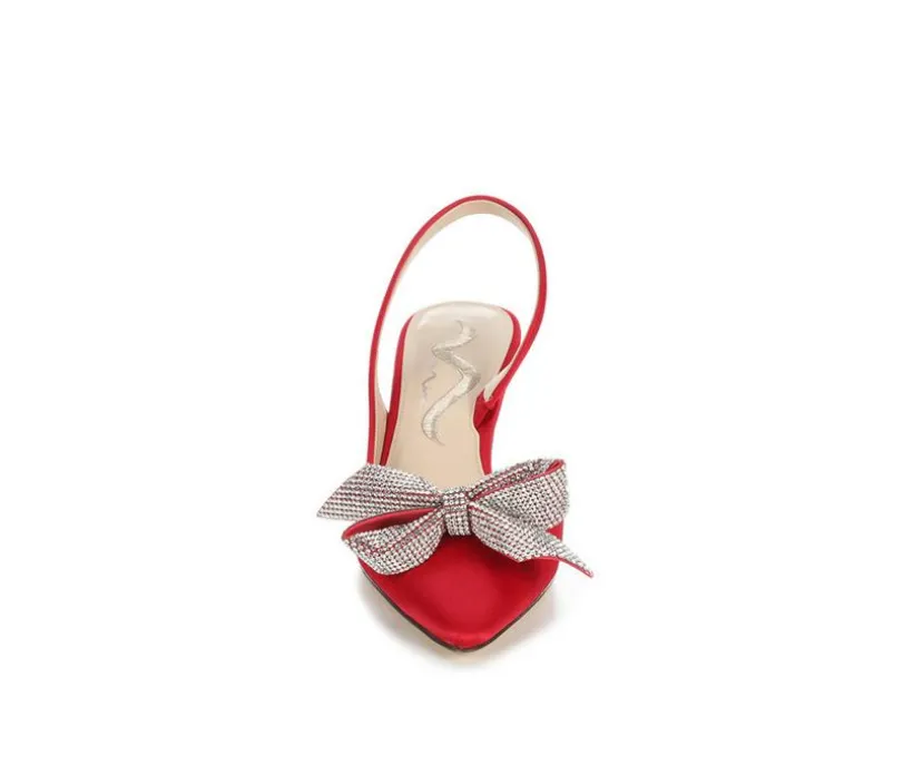 - Rhinestone-accented upper