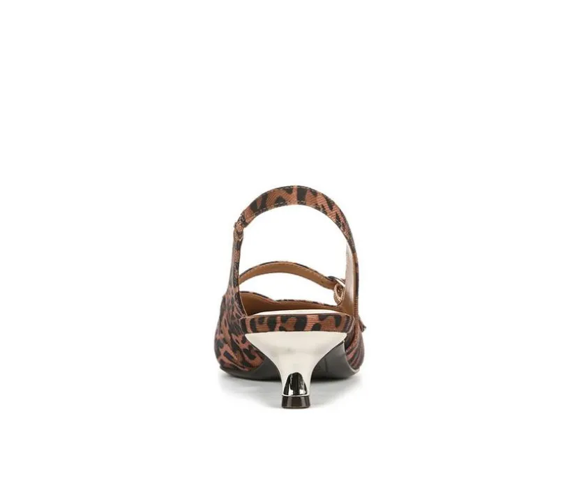It’s all in the details. Step into this comfortable slingback heel with a stylish strap + buckle, V-shaped topline and glossy kitten heel. Elegant heels with a pointed toe.