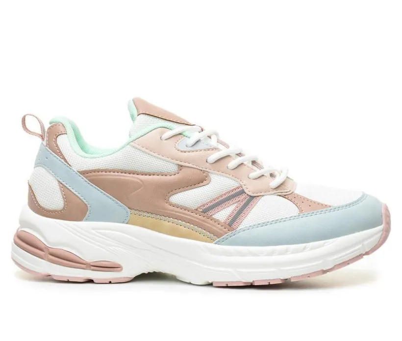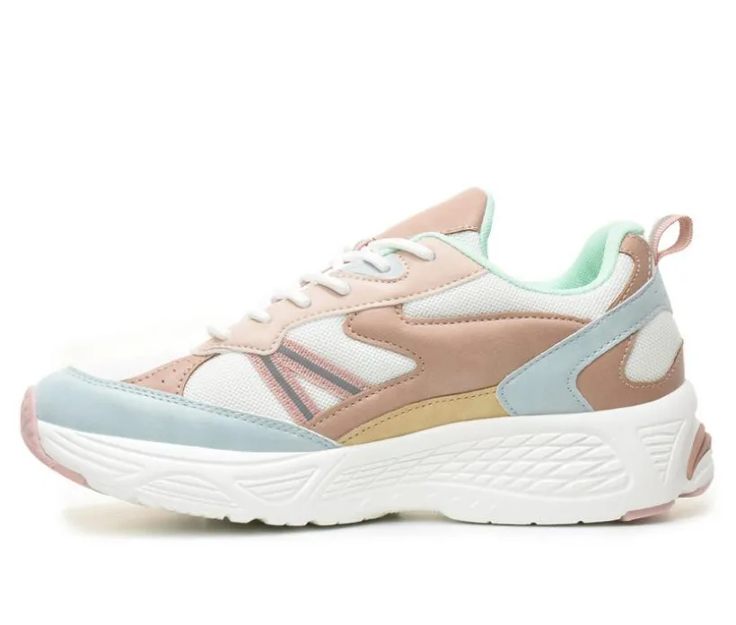 Make a bold move in comfort with the Women’s Nicole Miller Freeden sneakers. This chunky, fashion-forward sneaker features layered colorblocking, soft pastel tones, and a sculpted midsole for standout style and support. Breathable materials and cushioned comfort make it perfect for everything from casual streetwear to busy days on your feet.
