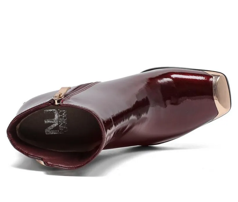Bring modern polish to your wardrobe with these ankle boots designed for versatile wear. The man-made upper is shaped with a bold square toe and finished with a decorative buckle strap that adds eye-catching detail. A block heel provides stylish lift, while the short shaft and inside zipper keep the fit easy and sleek.