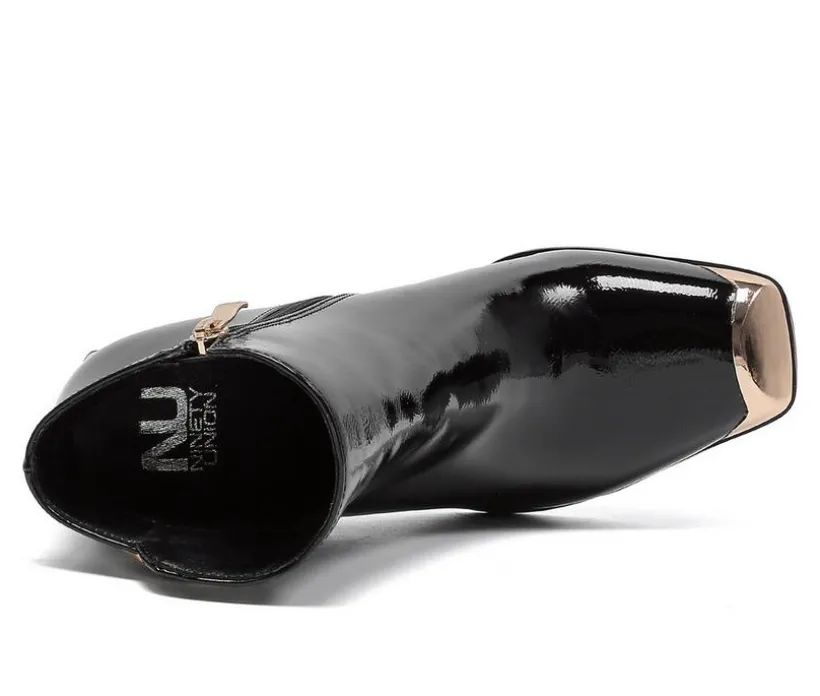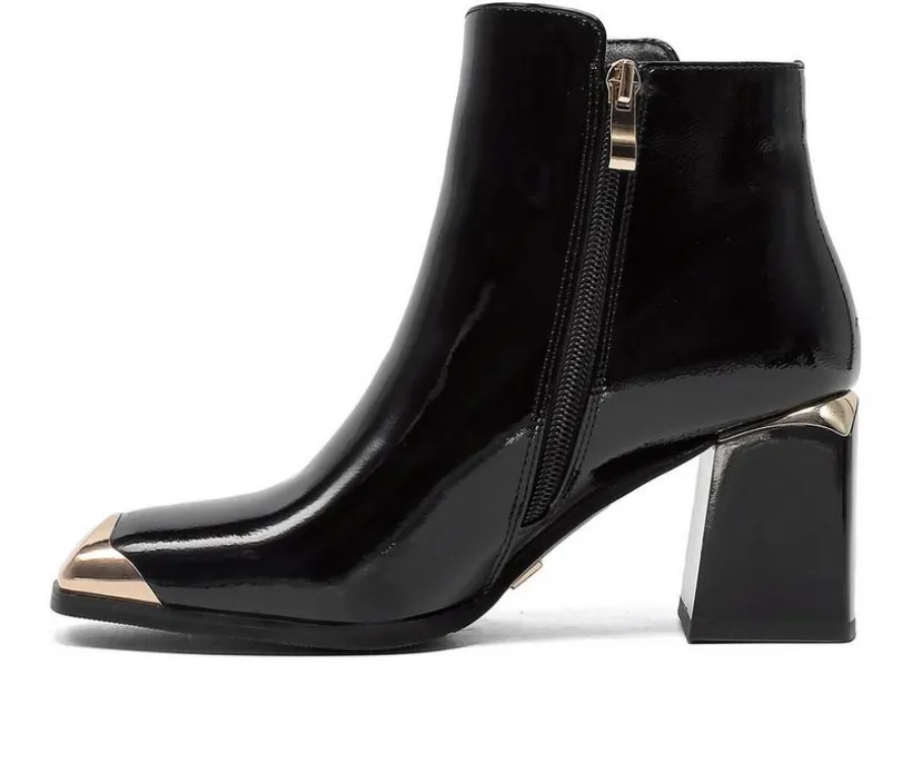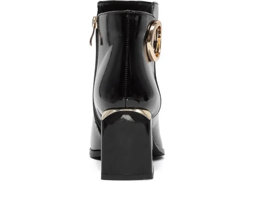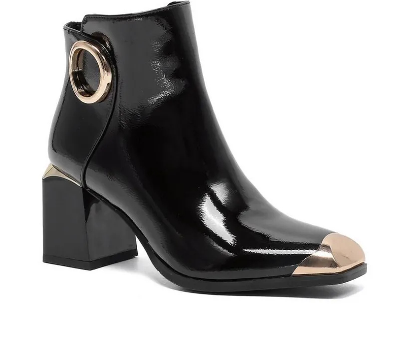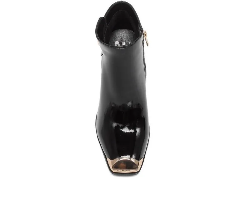 Bring modern polish to your wardrobe with these ankle boots designed for versatile wear. The man-made upper is shaped with a bold square toe and finished with a decorative buckle strap that adds eye-catching detail. A block heel provides stylish lift, while the short shaft and inside zipper keep the fit easy and sleek.