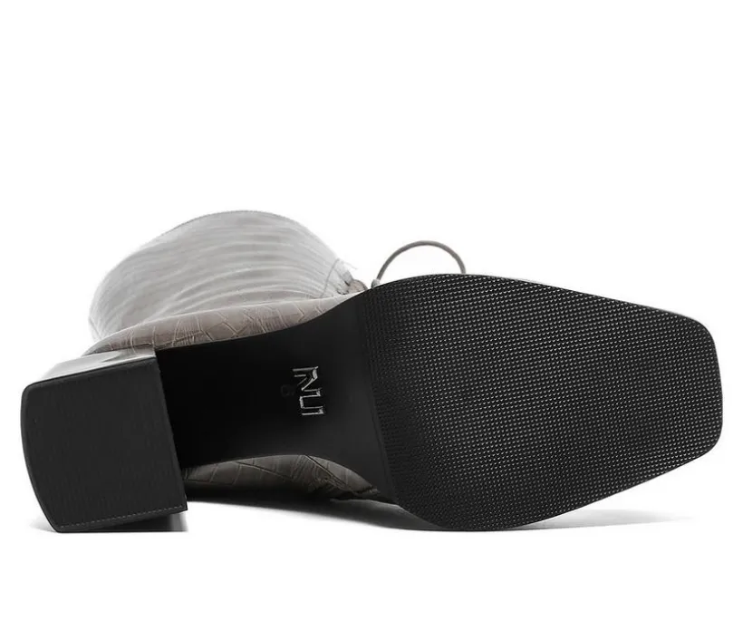Stand out with these tall boots that combine classic height with bold laced-up styling. The man-made upper rises to just below the knee, detailed with a full lace-up front for striking appeal. A block heel adds a confident lift, while the square-shaped shaft and inside zipper make them easy to wear. A perfect statement piece to pair with dresses, skirts, or skinny jeans.