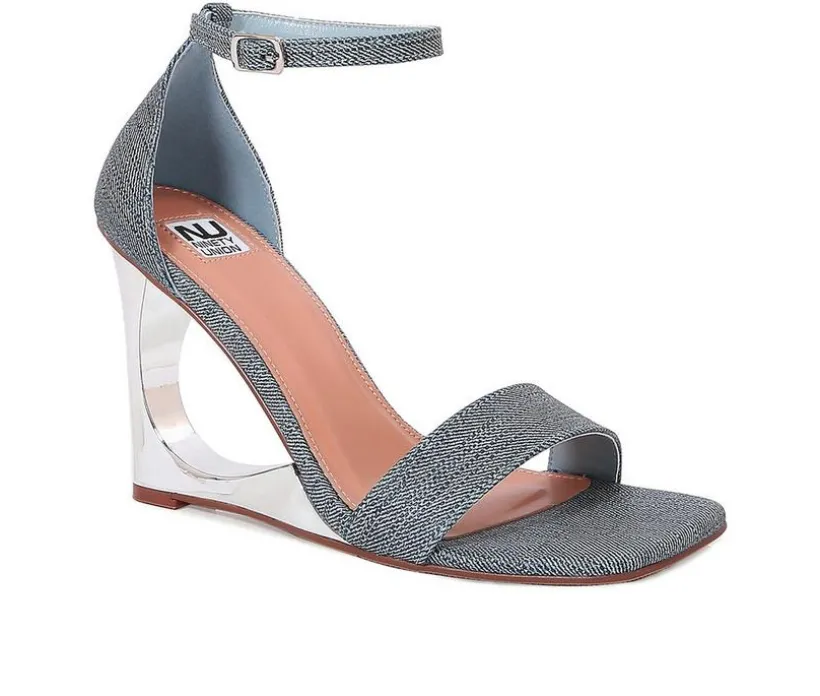 Take your look to the next level with this showstopping wedge sandal built to turn heads. A sleek ankle strap secures the fit, while the cutout wedge heel adds architectural edge and modern flair. The open toe keeps the silhouette light and breezy, perfect for warm-weather events and elegant nights out. With shimmer, shine, and standout shape, this sandal is pure statement style from every angle.