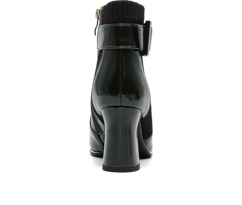 Chic and bold, these ankle boots stand out with polished details and a versatile silhouette. The man-made upper is styled with a rounded toe and accented by a decorative ankle strap and buckle. A block heel adds stylish lift, while the short shaft and inside zipper make them easy to wear day or night.
