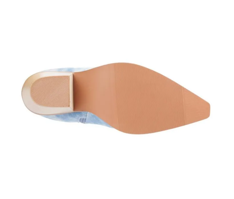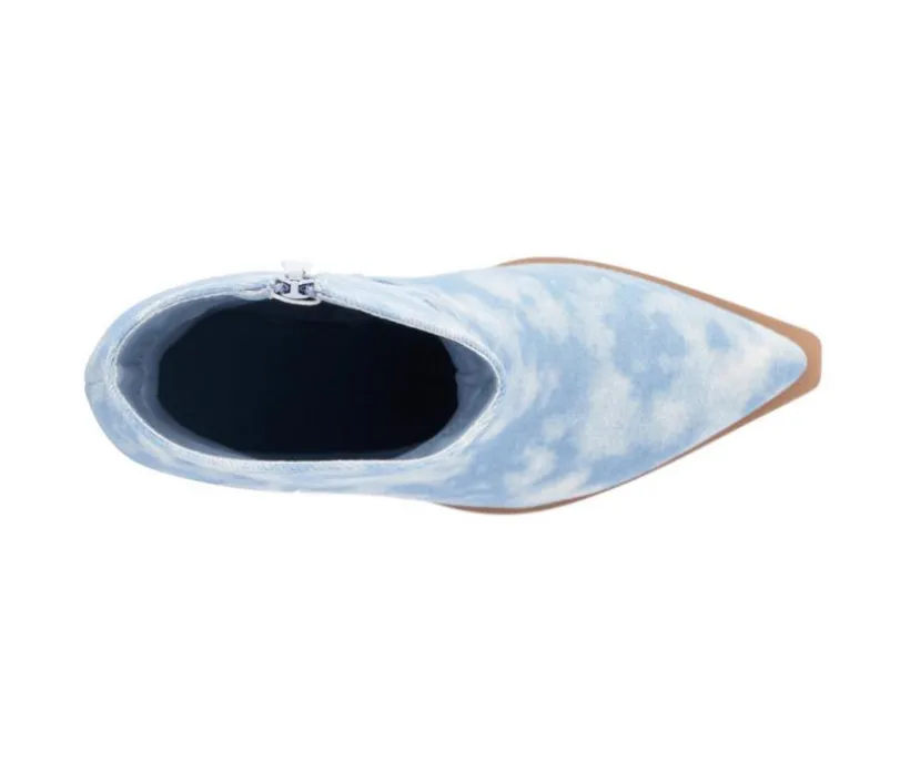 Acid-washed denim adds an unexpected twist to the Frosting, a Western-style ankle boot. Pairs perfectly with dark denim for a chic, contrasting look.