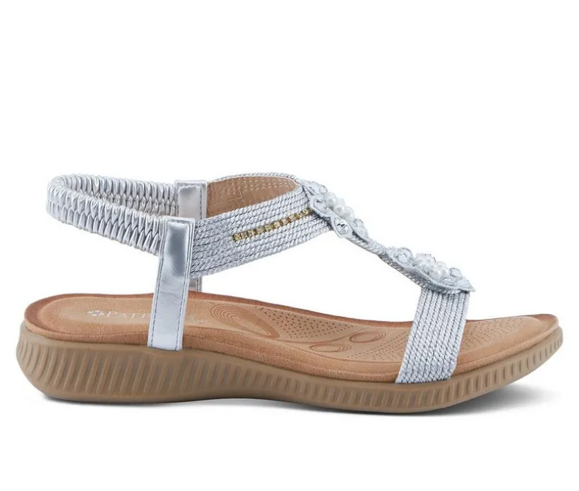 Add a touch of sparkle to your step with these elegant T-strap sandals designed for comfort and style. The shimmery upper is accented with intricate beaded embellishments, delivering eye-catching detail that dresses up any look. An elasticized heel strap ensures easy on-and-off wear, while the cushioned footbed keeps every stride supported. With a flexible sole and low profile, these sandals are perfect for warm-weather outings where comfort meets glam.