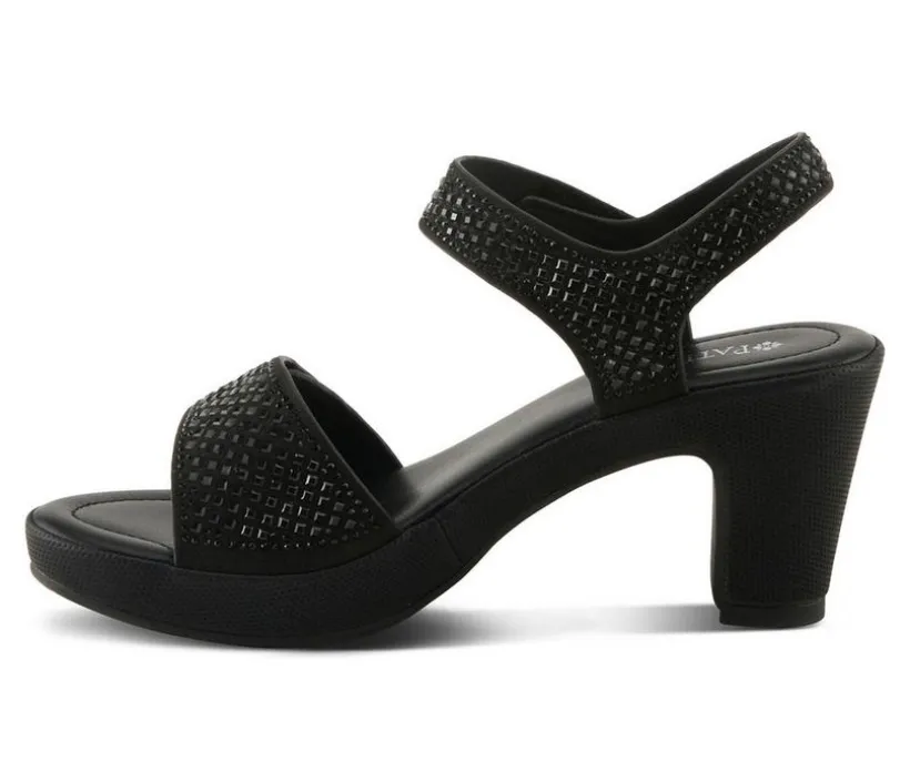 Dress up any occasion with these shimmering block heel sandals designed to turn heads while keeping comfort in mind. The dual-strap upper features sparkling rhinestone accents for a touch of glam, while the secure hook-and-loop closure ensures a customized fit. A cushioned insole supports you from dinner to dancing, and the sturdy heel with textured sole provides both style and stability. These sandals deliver elevated elegance for every step you take.