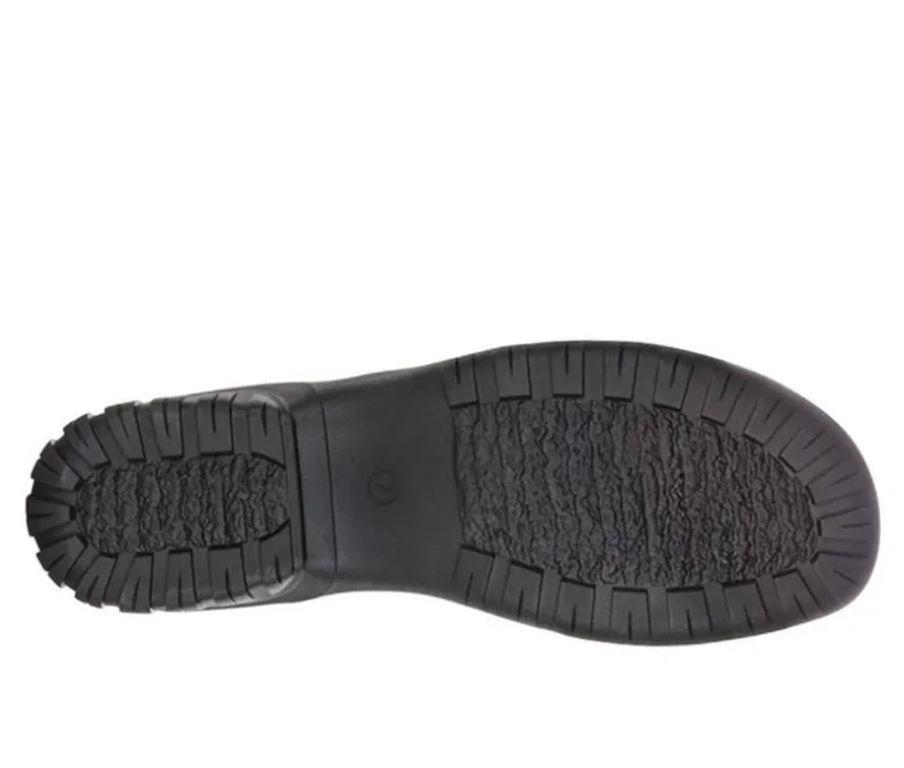 Extra roomy bootie in either leather or suede with convenient inside zip. Cushioning rubber with mesh lining. Flexible rubber sole provides responsive cushioned comfort with every step. 5 inch height, Scotchgard™, Removable footbed.