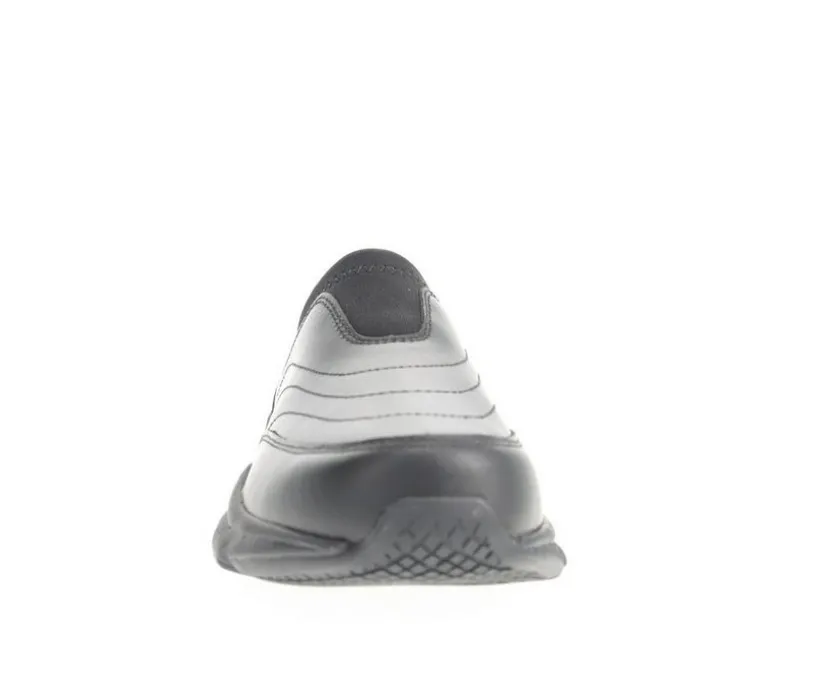 Leather or Nubuck slip on with center gore and a roomy toe box providing toes space to spread out improving stability. Soft cushioning PU for even wear with comfort ridges in forefoot and memory foam topper. Supportive EVA midsole with rubber outsole for a long lasting smooth stride. Slip Resistant, Scotchgard™ stain and water resistant treatment.
