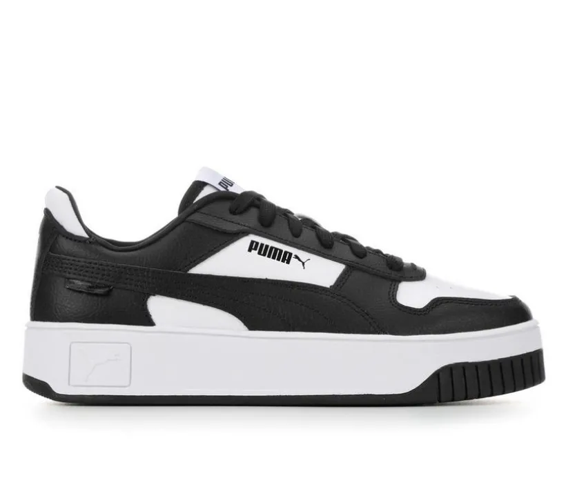 The Puma Carina Street Sneakers are crafted to complement your casual look with a touch of retro-inspired style. The synthetic leather upper offers a clean and sophisticated appearance, while the perforated Puma Formstrip adds a sporty element. The chunky platform sole not only provides a fashionable boost but also ensures a comfortable stride.