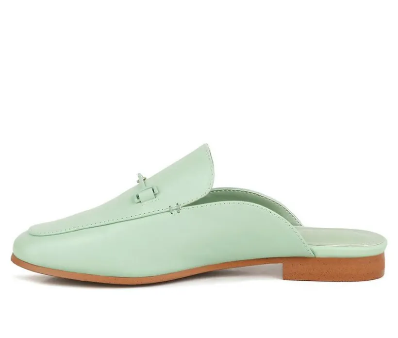 Lightweight mules for sweaty summer days. Classic style that looks luxe with every outfit. Includes a horsebit embelishment and flat heels for added ease while walking.