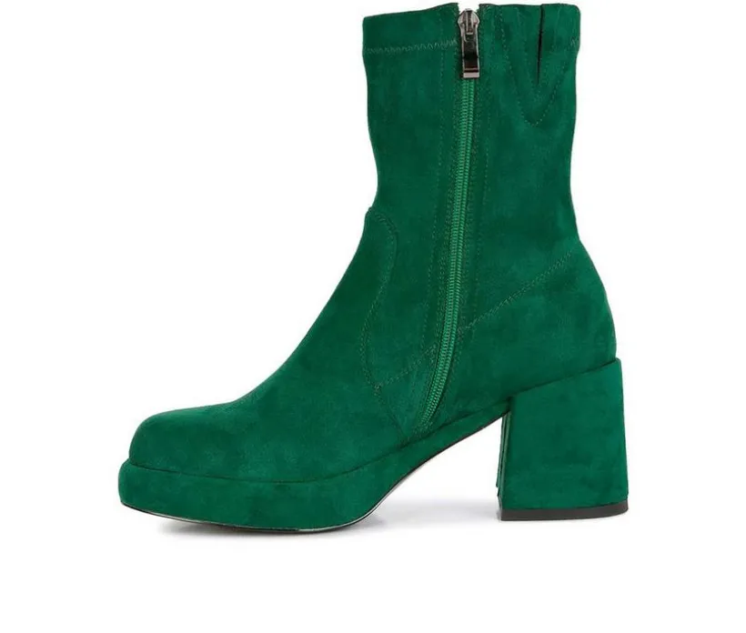 Mid High block heeled comfortable and plush ankle boot, crafted in stretchable fine suede is class apart. Comes in trendy square cut toe and block heels, this pair is easy to wear with side zipper opening.