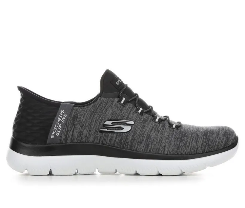 Pick up the pace with increased ease-of-wear and superior comfort wearing Slip-ins: Summits. Designed with a Heel Pillow, this vegan style features a soft heathered jersey knit upper with fixed stretch laces and a cushioned Air-Cooled Memory Foam comfort insole.