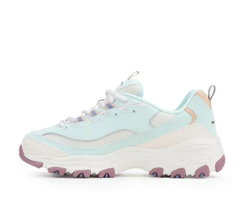 The Women’s Skechers 150555 D’Lites Suede Sneakers deliver retro-inspired style with modern comfort. Featuring a soft suede and mesh upper, these sneakers pair classic chunky design with breathable support. An Air-Cooled Memory Foam® insole and lightweight midsole provide all-day cushioning, while the durable rubber outsole ensures stability and traction for daily wear. Perfect for a sporty, throwback look that doesn’t sacrifice comfort.