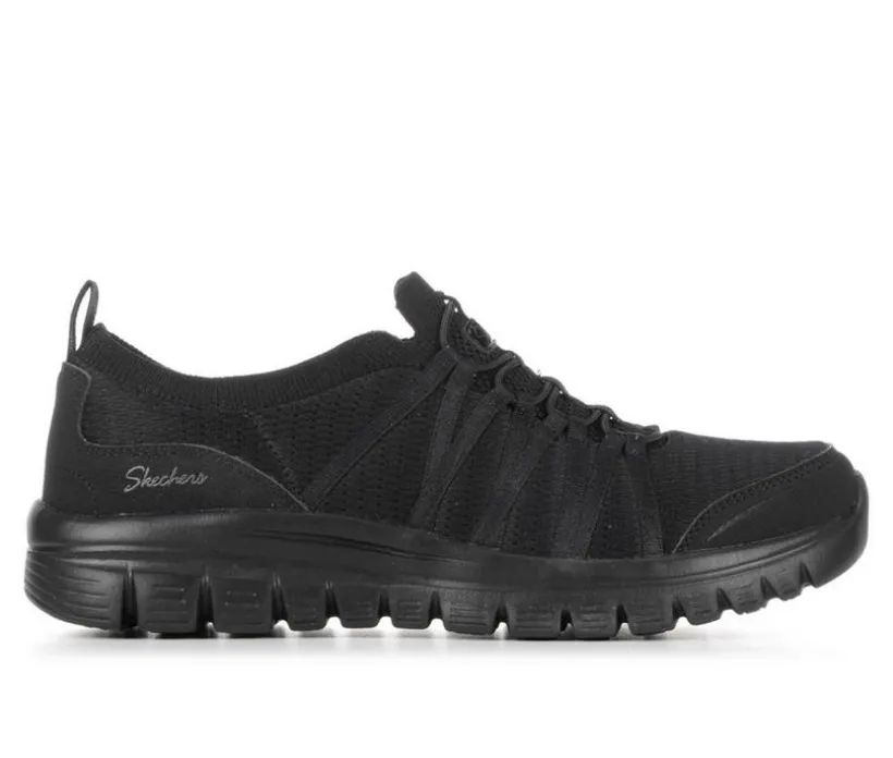 Grace your feet with easy-wearing comfort in Skechers Graceful. This stretch-laced vegan style features a Stretch Fit® mesh and synthetic overlay upper with a cushioned Skechers Memory Foam™ insole.