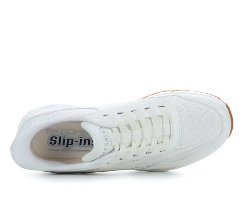 An iconic Skechers favorite is reimagined with effortless comfort in Skechers Street™ Hands Free Slip-ins®: Uno – Easy-Air. Designed with our exclusive Heel Pillow™, this fashion sneaker features a synthetic upper with stretch laces, a cushioned Skechers Air-Cooled Memory Foam® insole, and a visible Skech-Air® airbag midsole.