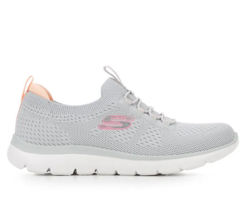 Reach the height of comfort with the Skechers Summits Sneakers. This slip-on sneaker features a soft flat mesh knit upper with a bungee-laced front and cushioned Memory Foam comfort insole.