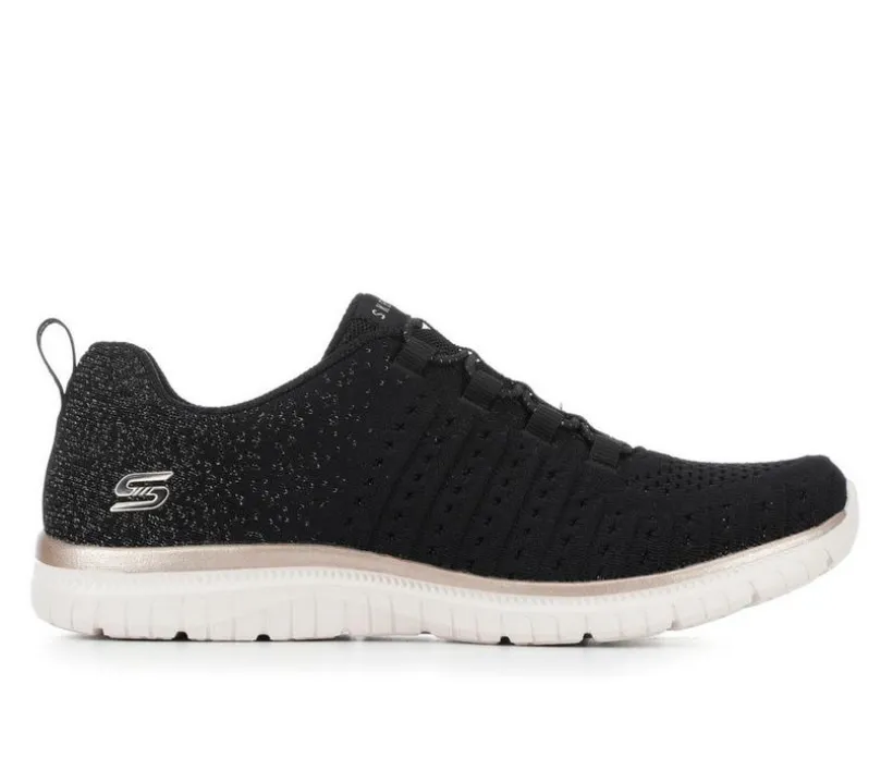 Breeze through your daily walks in easygoing comfort with Skechers Virtue Sneakers. Featuring a metallic engineered knit upper with stretch laces and a cushioned Skechers Memory Foam™ insole.