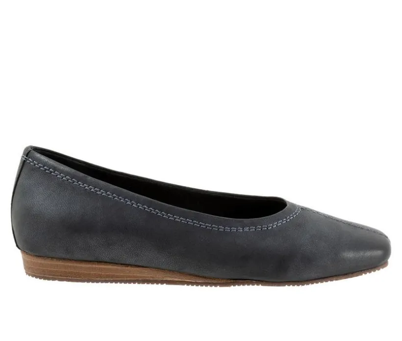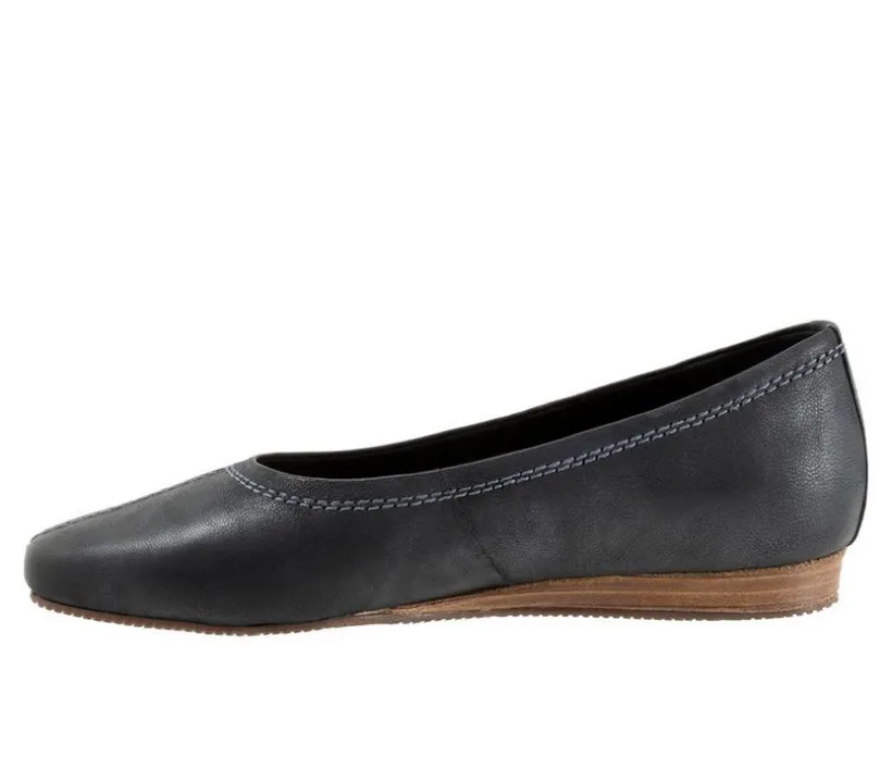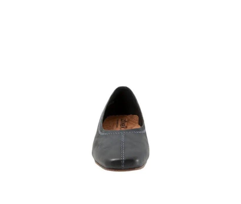 Vera Cruz is a modern square toe slip on flat with a mini-wedge sole and premium leathers. The sole is flexible with a sure-grip and the removable footbed is cushioned for comfort.