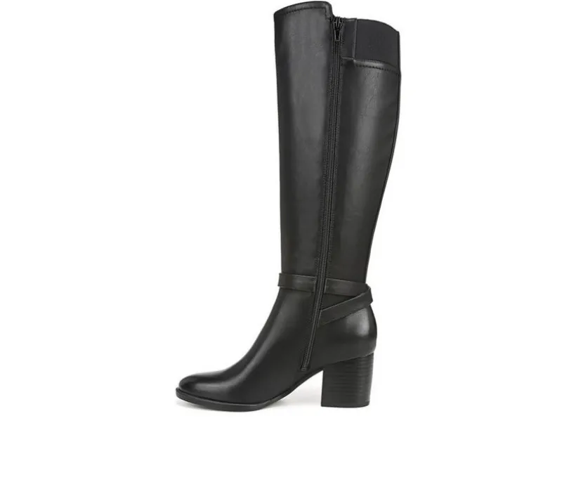From SOUL Naturalizer // Try these knee high boots on for size. With a flexible calf and countless tough-to-find sizes, you’ll love our Beautiful Fit. Comfortable, all day block heel boots for women with wraparound strap and buckle detail. Synthetic upper with 100% recycled polyester upper lining and almond toe. Side zip closure and side/back elastic goring for extra flexibility. All-Thru Comfort: soft foam lining, arch support with memory foam, antimicrobial sock lining, lightweight and flexible outsole. 3/8 inch platform, 2 1/2 inch block heel. 14.76 inch boot height; 14.33 inch calf circumference. Note: Measurements based on size 6 boot. For each half size larger, shaft height increases by . 12 inches, circumference by . 20 inches. Consciously packaged: 100% of our shoe boxes are made of 80% recycled paper + soy-based ink. Designed using some environmentally preferred materials. WHY YOU’LL LOVE IT: Forever elegant silhouettes with all day wearability, available in an inclusive range of sizes and widths. Designed to the contours of a woman’s foot. The Beautiful Fit. Since 1927.