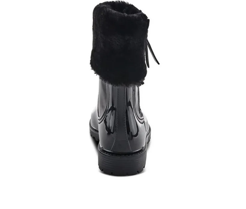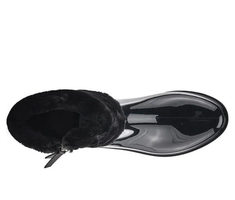 - Waterproof Shiny Synthetic upper with Faux Fur cuff