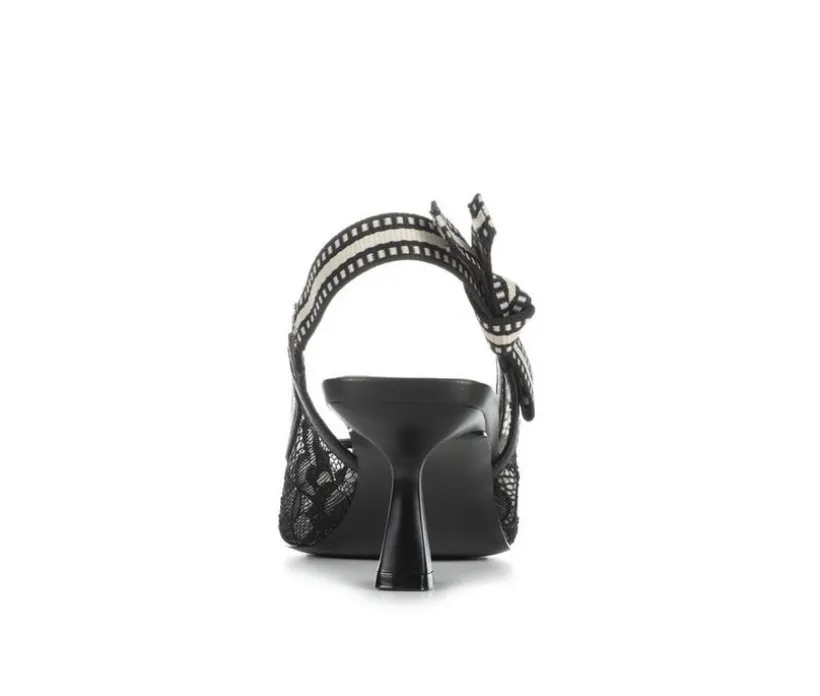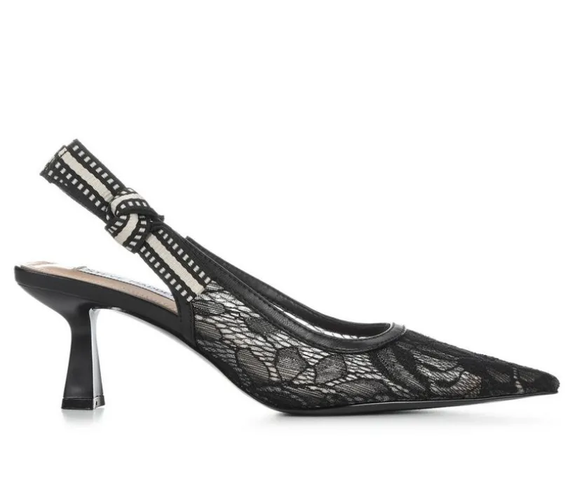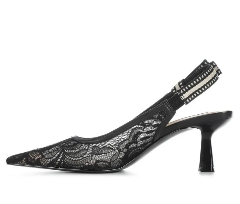 Chic and timeless, these slingback pumps bring playfull elegance to any outfit. Designed with pointed toes and sleek cutlines, the shoes stand out with their mix of refined textures and sheer lace detail for a femenine finish. A ribbon-accented slingback strap adds a charming touch while keeping the fit secure.