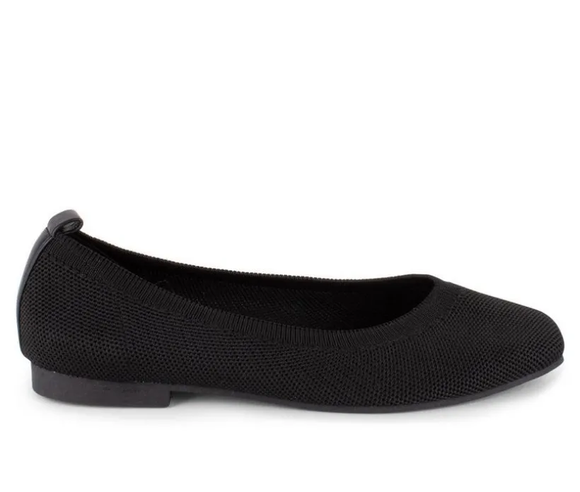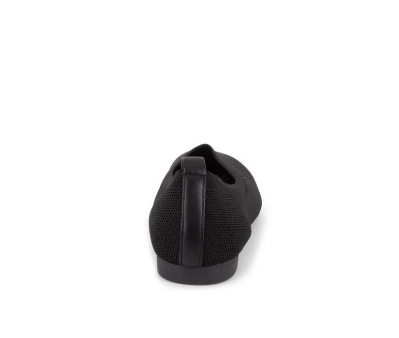Breathable Polyester Knit Flats with a modified square toe, a flexible outsole, & a cushioned insole for added comfort.