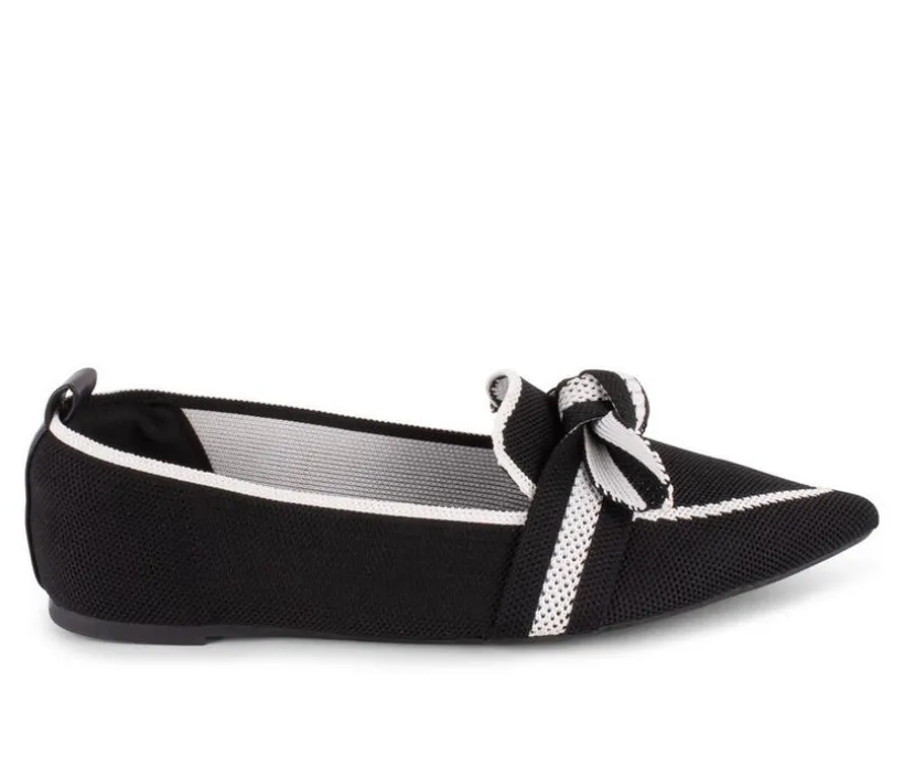 Breathable Polyester Knit Loafers with contrast trim details, pointed toe & a tied bow detail.