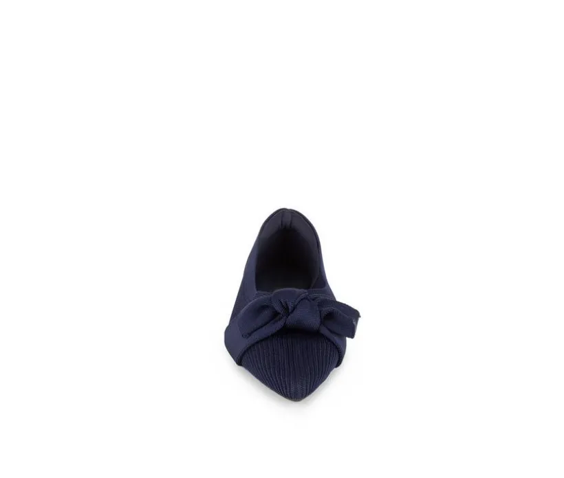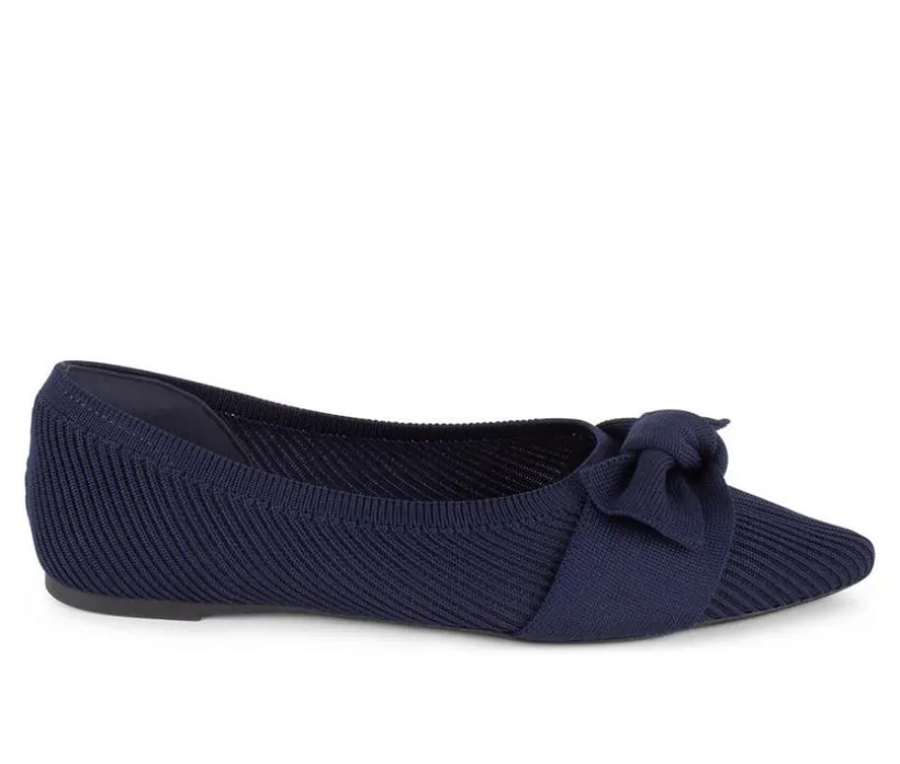 This stylish pointy toe flat features a rib knit upper enhanced with a delicate bow detail. Its slip-on design ensures all-day convenience, while the lightweight build offers effortless comfort. A refined yet playful option, these flats bring personality to any outfit.